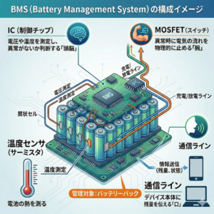 内部抵抗が上がると、同じ容量の電気があっても、取り出せる電力が減ったり、充電時間が長くなったり、熱を持ちやすくなったりします。
